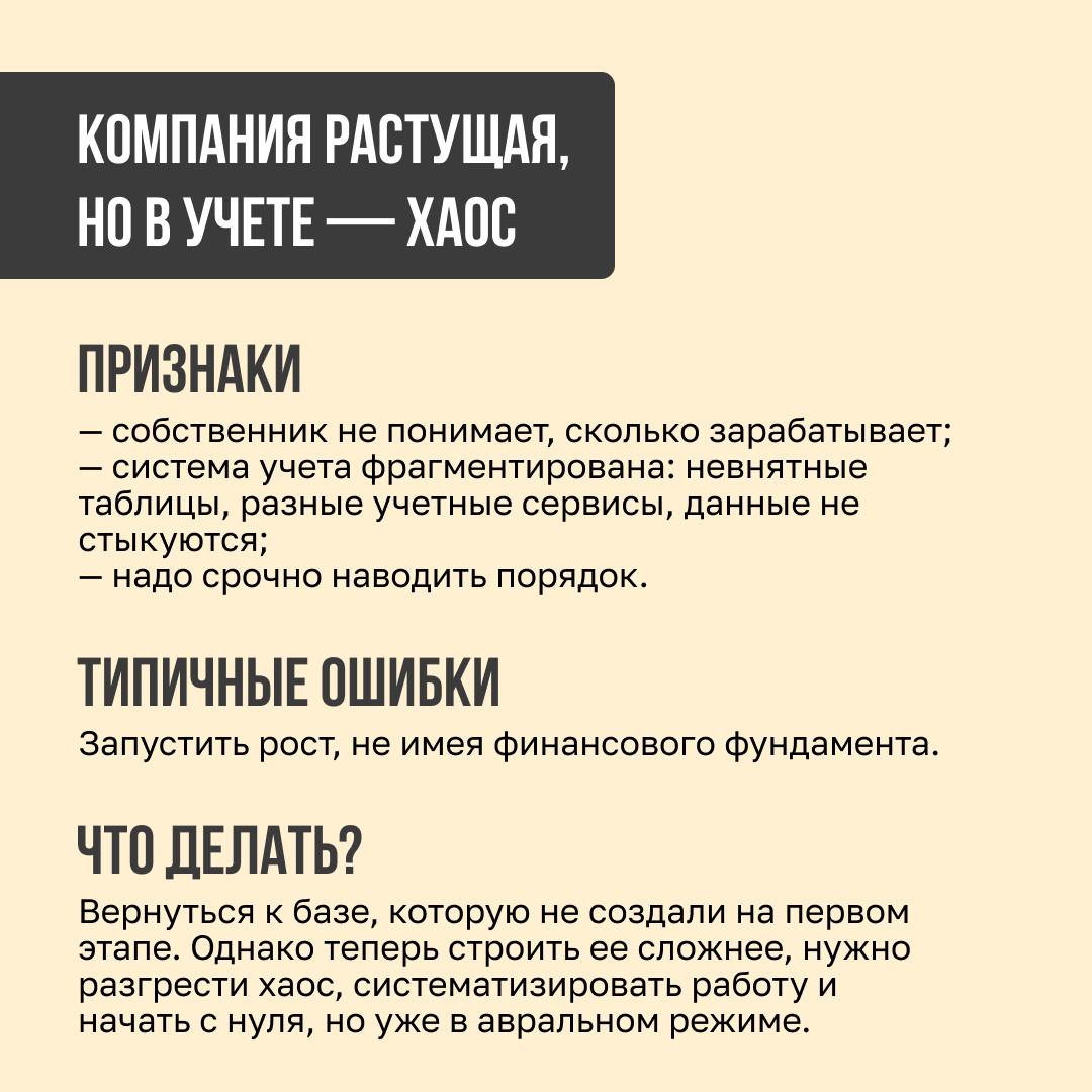 Когда в нашу компанию «Правила финансов» обращается собственник, мы в первую очередь определяем, на какой стадии развития находится его бизнес. Это практическая классификация, которая родилась из нашего опыта. У каждой стадии свои ошибки, свои ограничения и свои следующие шаги.